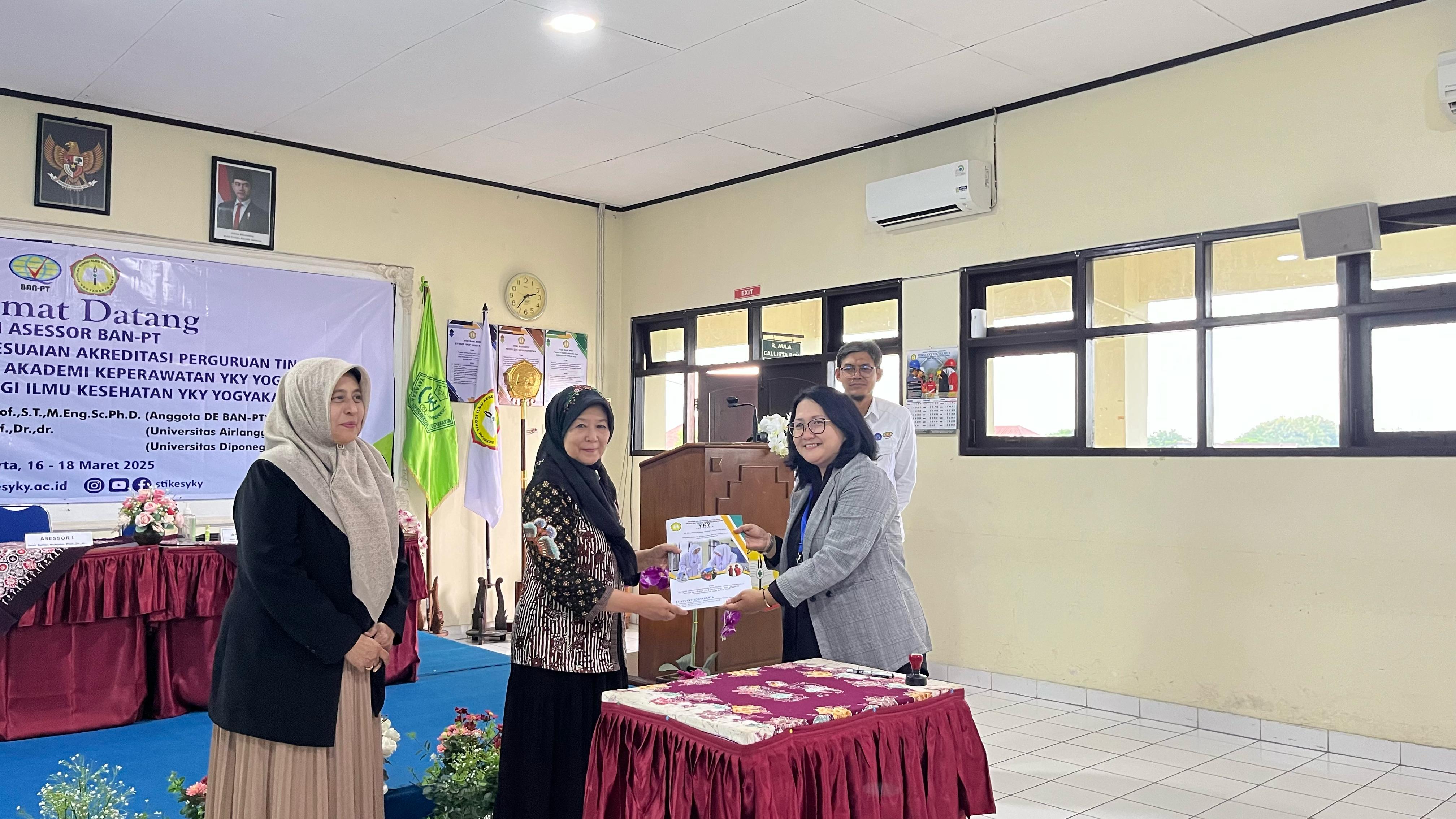 Pada Tanggal 16 - 18 Maret 2025 bertempat di Kampus STIKES YKY Yogyakarta dilaksanakan Surveilens Usulan Penyesuaian Akreditasi Perguruan Tinggi Dalam Rangka Perubahan Akademi Keperawatan YKY Yogyakarta Menjadi Sekolah Tinggi Ilmu Kesehatan YKY Yogyakarta oleh Badan Akreditasi Nasional Perguruan Tinggi (BAN-PT) yang di wakili oleh Tim Asessor  :